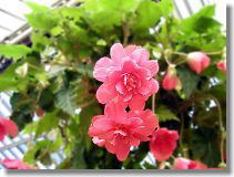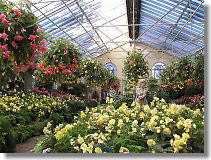 | Ordinary conservatory but many tropical flowers inside with warm sunshine. |