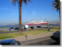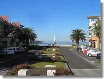 Beach area has wide roads and houses are big. Passenger ship Tasmania. |