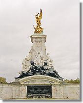 | Queen Victoria Memorial, seated Victoria on marble base with gilded Victory. |