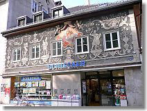 Looking at Pfarr church from the other side of the Ludwig street. |