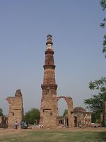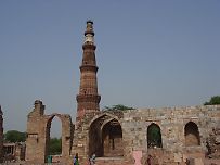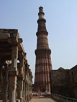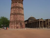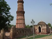 | Red minaret, Qutubminar. There are three spellings of Qutub, Qutb and Qutab. |