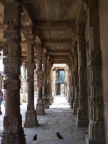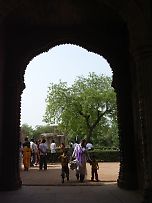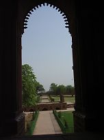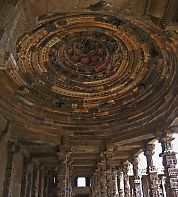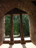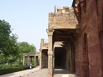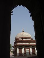 | Arch entrance, scenery through pillars, carved dome and ceiling, flanged