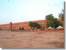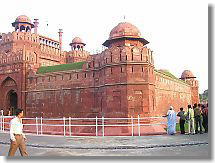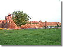 | Easy to find the Red Fort surrounded by huge ramparts and called Lal Quila in Hindi | |||