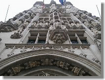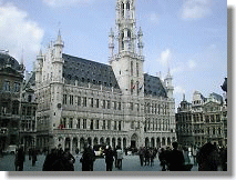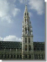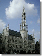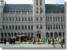 昼の市庁舎は15世紀から続く荘厳な姿です。 グランプラスでは花屋が店を開いています。
