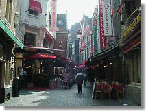 グランプラスの横の路地にレストラン街があります。シーフードが多く魚類があふれています。特にムール貝が有名です。頼むとバケツ一杯ほどのムール貝がきます。